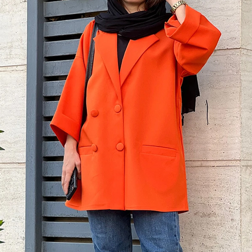 این مانتو برای استفاده روزمره، قرارهای دوستانه، محیط کار یا استایلهای رسمیتر، انتخابی بسیار هوشمندانه است. رنگ نارنجی خاص آن توجه را جلب میکند و در عین حال با فرم کتی، ظاهری بسیار مرتب و خوشپوش به شما میدهد.